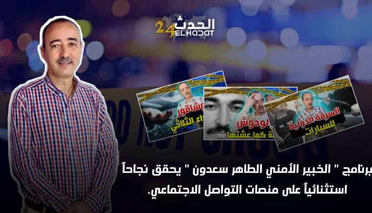 يشهد برنامج ” الخبير الأمني الطاهر سعدون”، الذي يُقدمه الإعلامي مهدي مسعيد على قناة الحدث 24، نجاحاً غير مسبوق، حيث حقق أرقاماً قياسية في المشاهدات والتفاعلات على منصات وسائل التواصل الاجتماعي. ويستضيف البرنامج في كل حلقة الخبير الأمني الطاهر سعدون، المساعد الأول السابق في صفوف رجال الدرك الملكي، الذي يقدم تحليلات معمقة حول مختلف القضايا الأمنية التي أدارها خلال مسيرته المهنية.